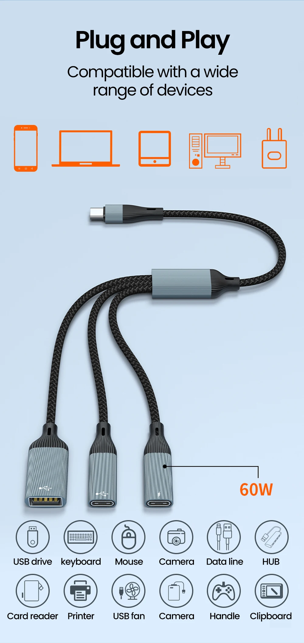 60W PD fast charging + OTG + data transfer in ONE cable